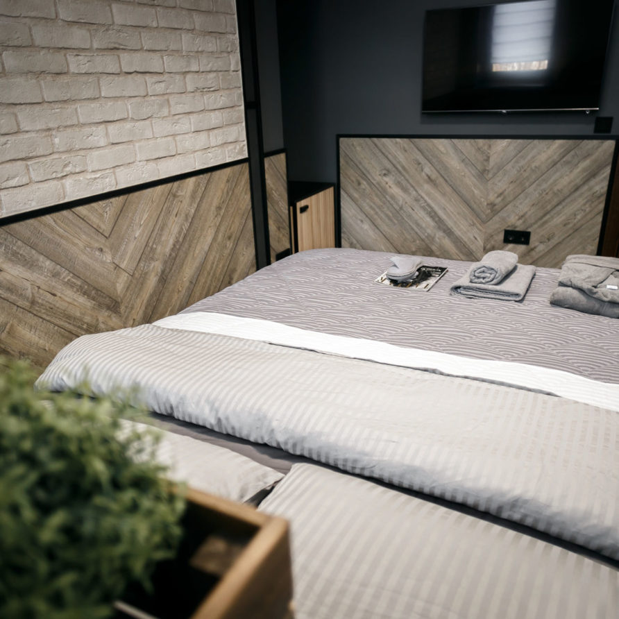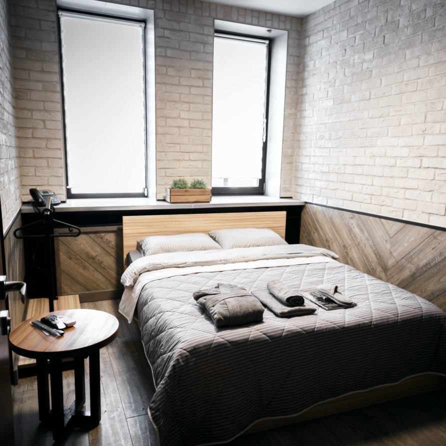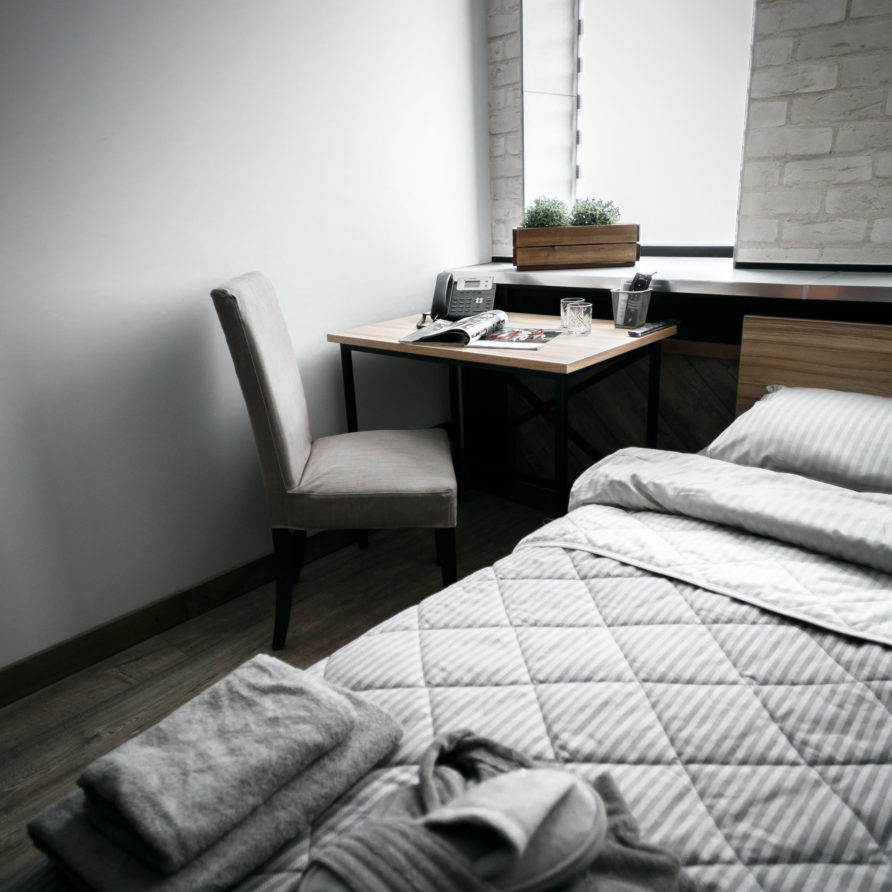 «Стандарт»- однокомнатный номер с предоставлением основных услуг. Телевизор, холодильник, кондиционер находятся в номере. Небольшой холл оснащен встроенным шкафом и пуфом. Санузел совмещенный (душ и туалет). Номер рассчитан на проживание от одного до двух человек.