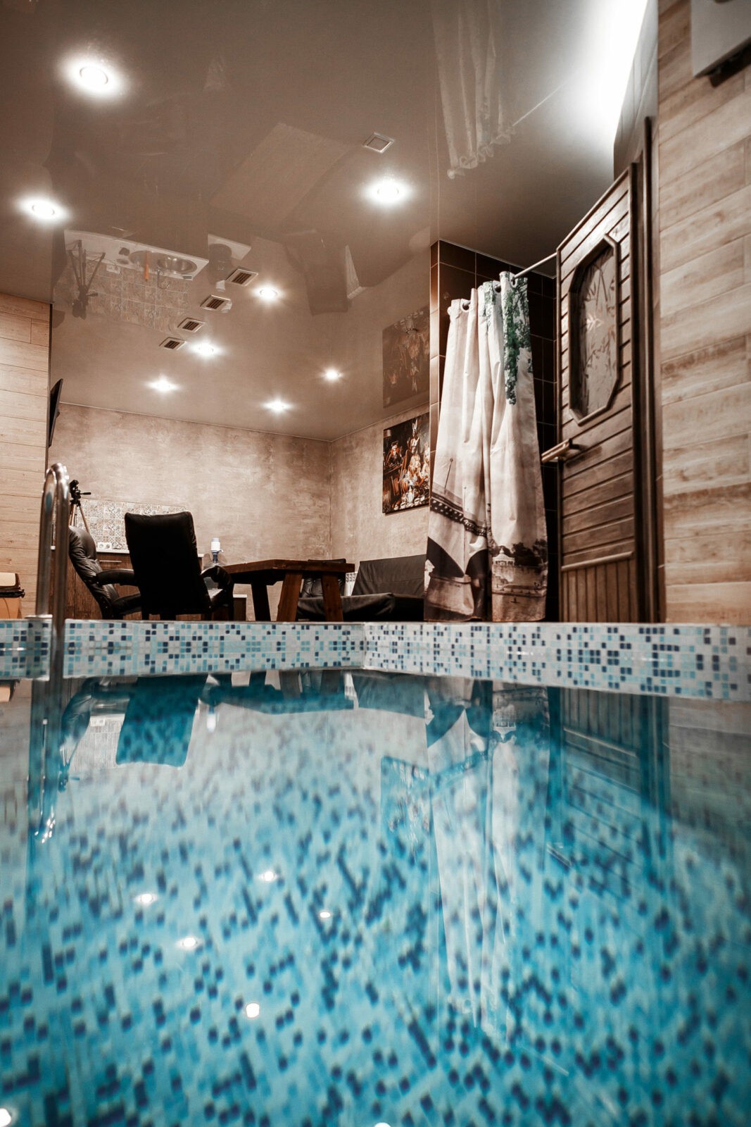 В вашем распоряжении будут три финских парных, бассейны с прозрачной водой и современной системой очистки, уютные гостиные, караоке и комнаты отдыха с удобной мебелью, рассчитанные на компании до 8-ми человек. Мы рады предложить вам ресторанное меню и возможность отдохнуть в аппарт-отеле, находящимся в одном здании с саунами. А так же удобную парковку, одноразовые принадлежности и напитки.
